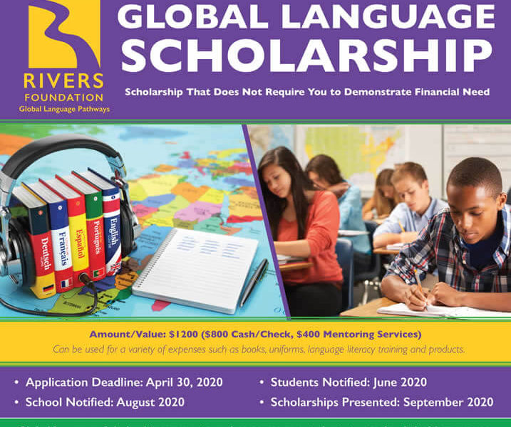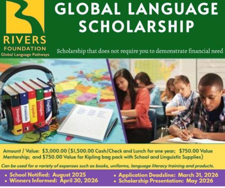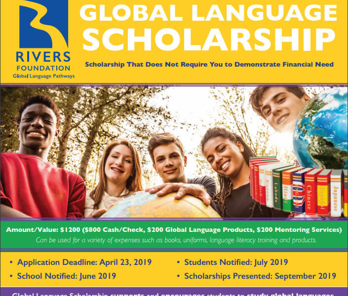 The Rivers Foundation is a U.S. Based 501 (c ) (3) Not-For-Profit Organization with an international focus whose mission is to promote and support students’ study of global languages in general, and French, Spanish and Chinese in particular, to develop language proficiency for further education, to develop the global workforce, and to use language as a tool to help foster greater understanding of our world.